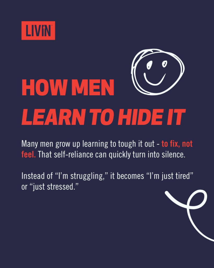 When things get tough, many men go quiet instead of reaching out – shutting down, staying busy, or convincing themselves they’ll sort it out alone.