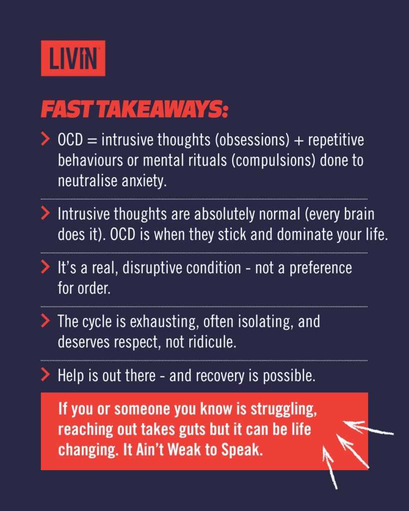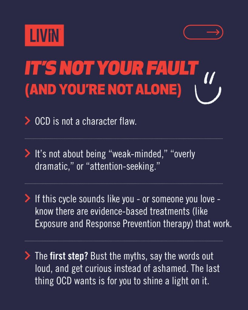 • The first step? Bust the myths, say the words out loud, and get curious instead of ashamed. The last thing OCD wants is for you to shine a light on it.